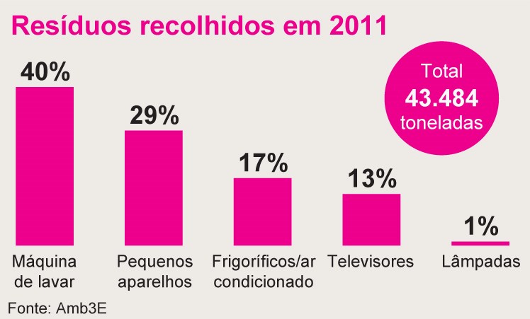 Em cinco anos de actividade regular, a Amb3E – empresa que gere os resíduos de cerca de 70% dos produtos eléctricos e electrónicos colocados no mercado – recolheu cerca de 180 mil toneladas de aparelhos que de outra forma iriam para o lixo normal. A quantidade tem vindo a aumentar. No ano passado, foram cerca de 43 mil toneladas – 22% a mais do que em 2010.