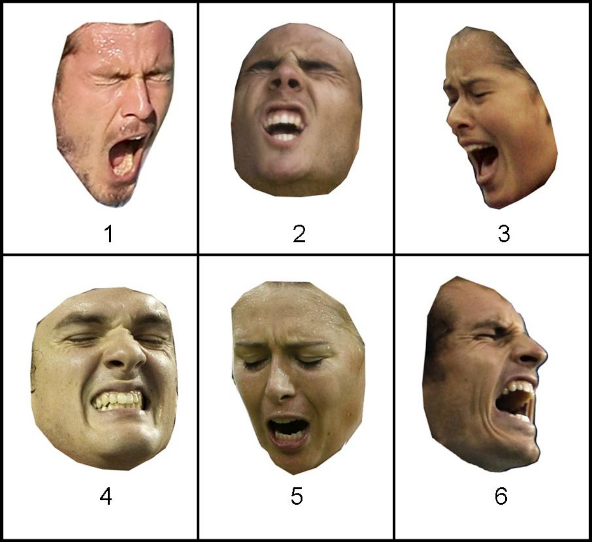 Os cientistas isolaram, depois, as caras dos corpos dos tenistas e deram a observar três tipos de imagens distintas a três grupos de participantes de 15 pessoas cada. Algumas imagens eram integrais com o corpo e a cara dos jogadores, outras só tinham a cara sem o corpo e o terceiro grupo mostrava o corpo sem a cara.