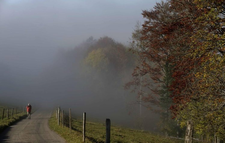 Um homem caminhava ontem por uma estrada na montanha Vogelberg (1204 metros de altitude), na Suíça, num dia de Outono. Foto: Arnd Wiegmann/Reuters