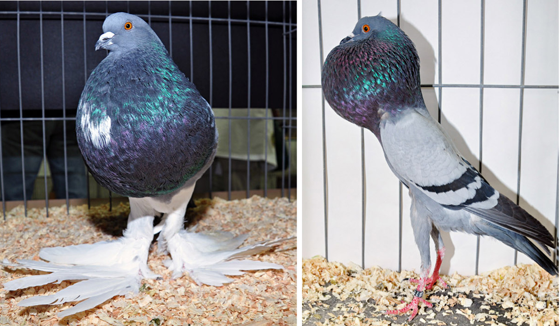 E, entre essas raças todas, as diferenças de cor, de plumagem, de tamanho, de morfologia do corpo e do bico, de vocalização são, pelo contrário, estonteantes. Aliás, os criadores de pombos têm aproveitado essa diversidade para gerar as mais exóticas e fantasiosas variantes, algumas a roçar o monstruoso com o seus peitos desproporcionados, a sua magreza extrema - ou as enormes penas a saírem das suas patas... "Na Europa, há séculos que a criação de pombos se tornou um passatempo muito popular", disse ao PÚBLICO Michael Shapiro, da Universidade do Utah (EUA), que liderou o trabalho agora publicado.