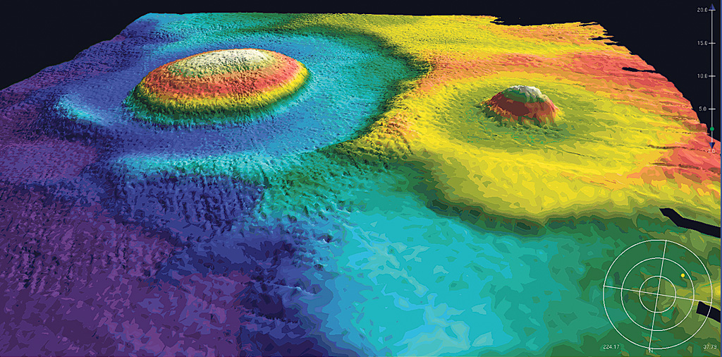 Os levantamentos do relevo marinho na zona em 2008, com os sondadores multifeixe, quando os navios iam a caminho das campanhas, revelaram uma estrutura em forma de ovo estrelado, com uma elevação no centro, como a gema, e uma parte à volta mais funda, como a clara. A dois quilómetros de profundidade, estende-se por seis de diâmetro e os cientistas só deram com ele quando, em 2009, olharam para os dados que não tinham directamente a ver com a extensão da plataforma.