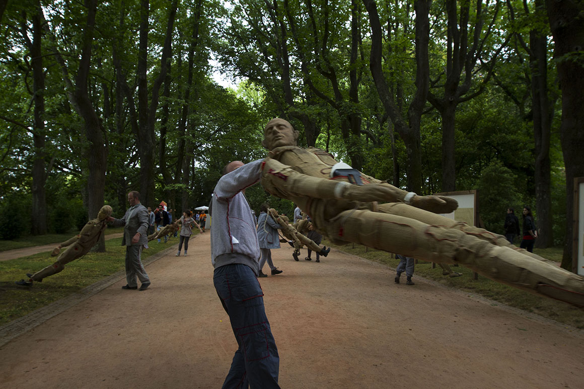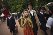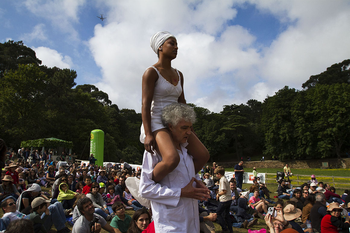 Ontem, pelas 14h, o parque começava a encher. O vestuário dizia tudo sobre a imprevisibilidade do tempo: uns traziam guarda-chuvas e casacos, outros foram de t-shirt. Àquela hora, numa varanda da Casa de Serralves, uma donzela acenava ao povo. Nas imediações, um jovem inexpressivo carregava uma marioneta cuja única expressão era um bocejo. Uns passos abaixo, uma "princesa falida" vendia jóias "para ter comida" e uma outra, de cabelos azuis, dava beijinhos a quem os quisesse receber - incluindo um dos 400 voluntários da festa. Marionetas - "damas, donzelas e princesas" - vindas da Escola Artística de Soares dos Reis.