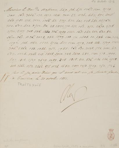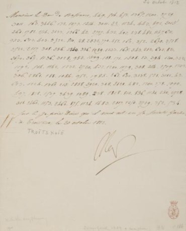 Assinada "Nap", e dirigida ao seu ministro dos Negócios Estrangeiros, Hugues-Bernard Maret, duque de Bassano, a carta foi redigida após o imperador ter deixado Moscovo em ruínas, retirando-se para os arredores da cidade.
