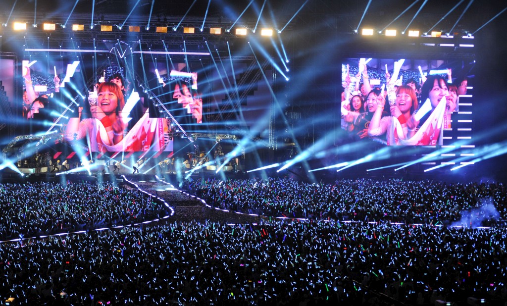 A multidão grita. Não há palmas, só berros entre cada canção, ou entre um gesto de dança mais ousado, que só se pode ver graças aos dois ecrãs gigantes colocados em cada lado do mega-palco.