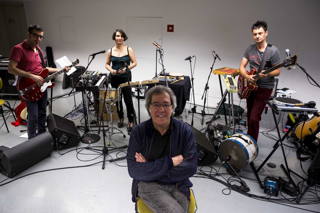 No palco, quando Sérgio entrou sob aplausos, já estavam Hélder Gonçalves, Manuela Azevedo e Nuno Rafael, os músicos e cúmplices desta aventura por territórios alheios. Em semi-obscuridade, iam testando os instrumentos, sobretudo guitarras, teclados e percussões várias (nenhuma bateria, mas os arranjos dispensaram-na com brio). Em noite de canções alheias, Sérgio Godinho começou com uma sua, A última sessão, de Lupa: “Será que ainda/ temos enredo/ pra tanto gosto/ pra tanto medo”? A resposta veio de um “filme” antigo e inquietante, Jim Morrison e People are strange, The Doors na primeira incursão da noite pelo mundo das versões. Love minus zero / the limit, pérola dylaniana de Bringing It All Back Home, deu-lhe réplica: se as pessoas parecem estranhas quando nós somos estranhos (Morrison dixit e Sérgio repete), aqui “o vento uiva como um martelo/ a noite sopra fria e chuvosa/ o meu amor é como um corvo/ com uma asa quebrada à minha janela”.