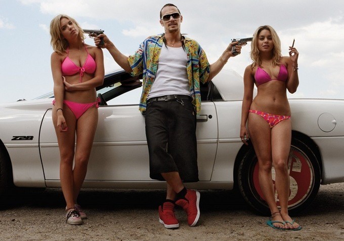A imagem original, a fantasia que faz cócegas no cérebro, foi a de um grupo de raparigas de bikini na praia, armas e balaclavas. (Nada de exagerar na fantasia: isto aconteceu muito antes das Pussy Riot, deve mais a sátira grotesca à la Russ Meyer...) Depois, imaginar um filme assim com um cast de actrizes de um universo teen benigno, do género Disney Channel ou High School Musical, e meter-se dentro do bikini delas e concretizar uma grosseria de drogas, álcool e sexo - não como quem perverte o que é puro, mas como quem olha para a realidade.