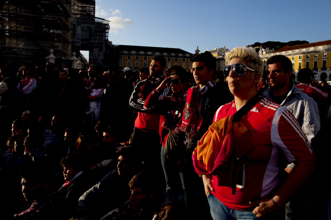 O relógio marca 19h30 e também uma espera que rouba tempo de vida a milhares de benfiquistas na Praça do Comércio, em Lisboa. Correm os minutos à canelada, até os minutos se transformarem em segundos, e depois empurram os segundos com as mãos já dentro da grande área da ansiedade. Mais do que derrotar o Chelsea, só querem derrubar o relógio.