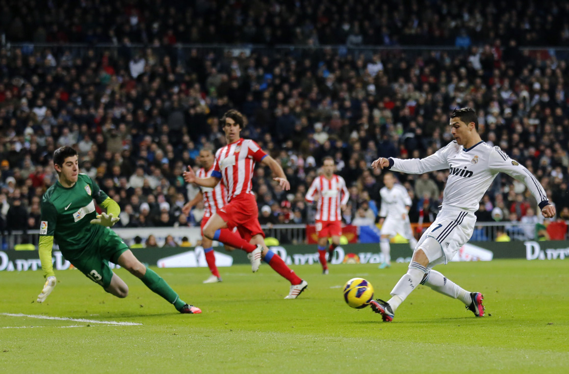 Após um lance na área merengue, Cristiano Ronaldo demorou cerca de dez segundos a chegar à baliza contrária. O sprint do internacional português quase foi premiado com um golo, que valeria o 3-0 para o Real Madrid (e o segundo da noite para Cristiano Ronaldo). Mas a bola acabou por ir ao ferro da baliza de Courtois.