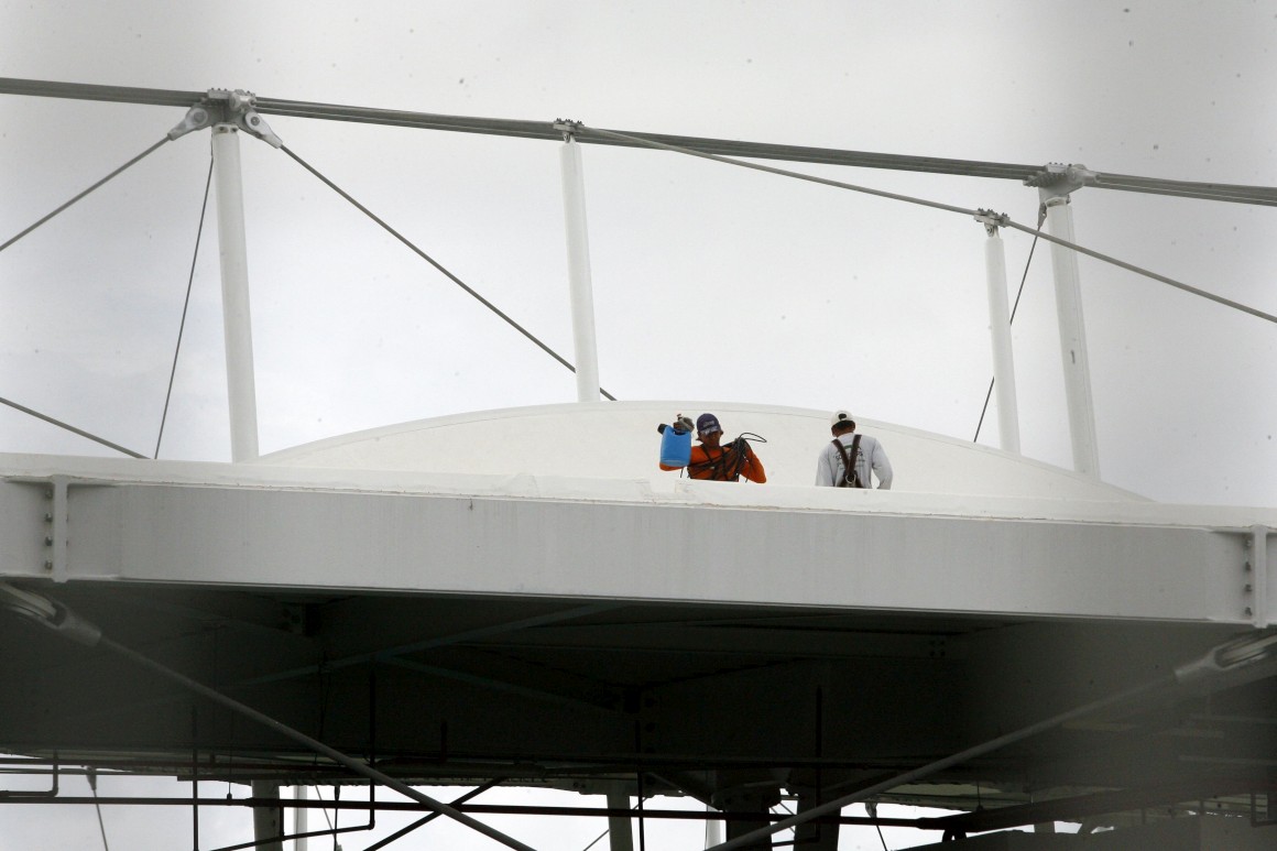 A instalação da membrana da cobertura, com uma superfície de 36 mil metros quadrados, em plástico de alta qualidade e fibra de vidro, mobilizou durante perto de dois meses uma equipa de 75 pessoas.