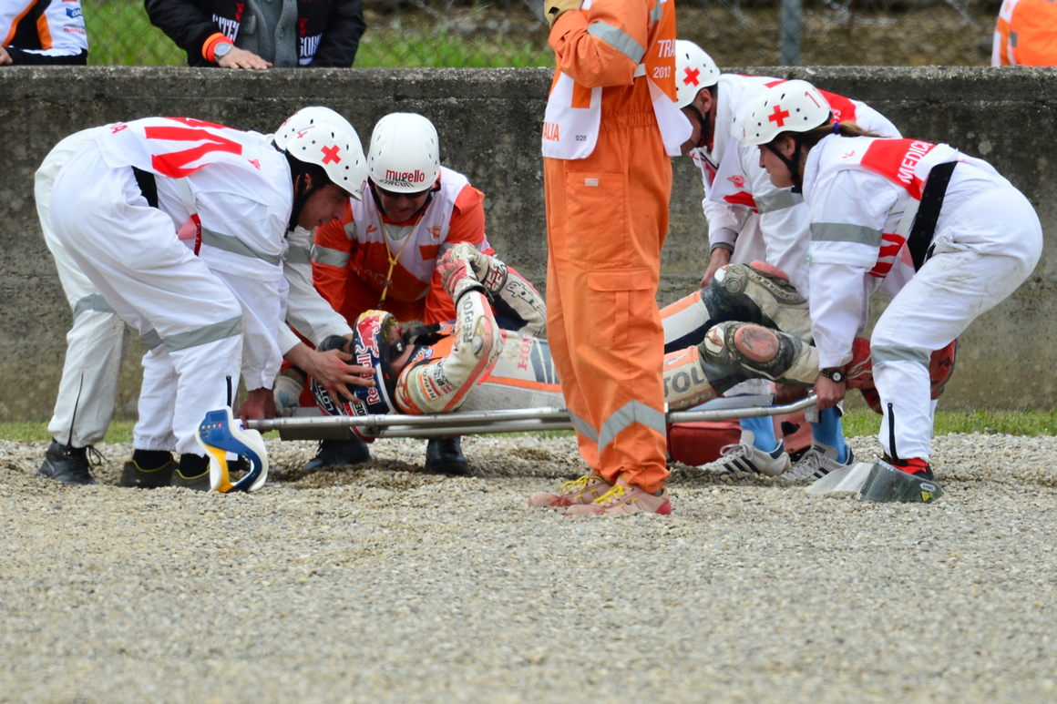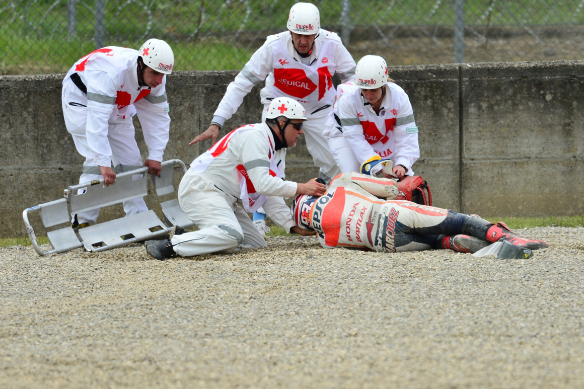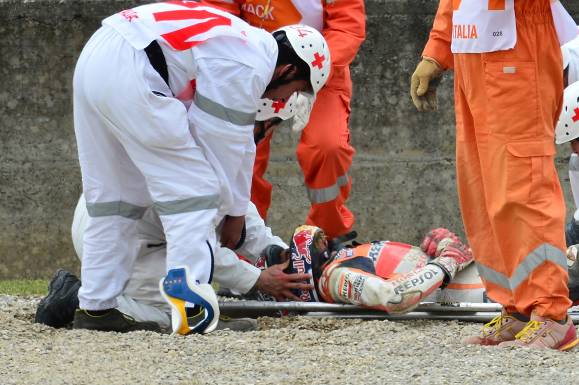 O acidente provocou um forte golpe na mandíbula e uma ferida no queixo a Márquez, mas os médicos que o examinaram não detectaram qualquer lesão mais grave.
