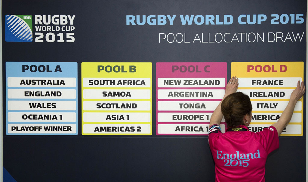 Apesar de todos os grupos ainda terem duas selecções por definir, o sorteio já ditou um “grupo da morte”, onde está incluída a Inglaterra. No Grupo A, para além do país organizador, estão também dois semifinalistas do Mundial 2011 (Austrália e País de Gales), sendo muito provável que o lugar atribuído a “Oceânia 1” seja ocupado pelas Ilhas Fiji.