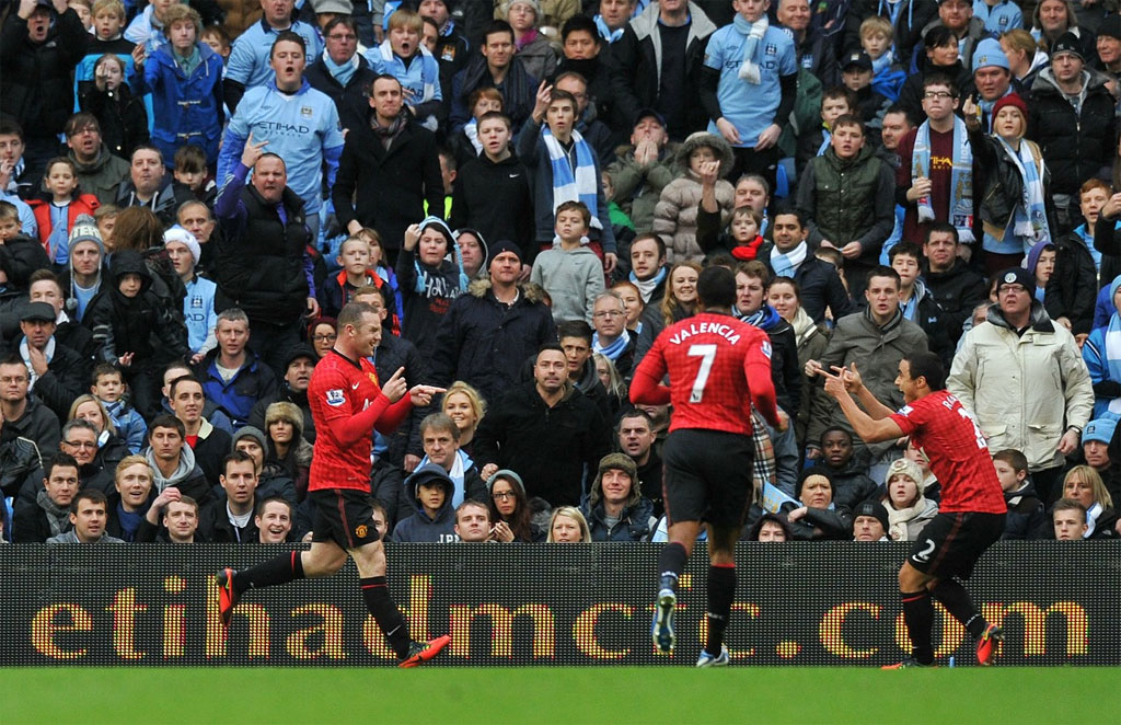 Foi no contra-ataque que os "red devils" encontraram o antídoto para a estratégia do City. Aos 16', Wayne Rooney foi tão espontâneo quanto certeiro no remate e abriu o activo. Aos 29', voltou a marcar, desta vez emendando à boca da baliza um bom cruzamento vindo da ala direita. Foi o 150.º golo do avançado inglês na Premier League.