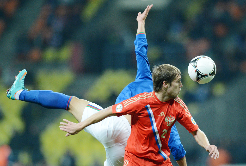Apesar de um domínio esmagador durante todo o jogo, os russos não conseguiram encontrar o caminho da baliza azeri e só perto do final conseguiram desfazer a igualdade. Bystrov sofre uma falta de um defesa do Azerbaijão que parece ter sido feita fora da área, mas o árbitro do jogo considerou que era dentro.