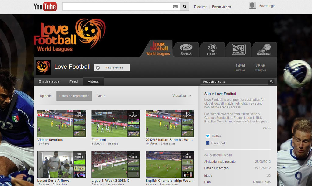 Com o lançamento do canal no YouTube Love Footbal, os adeptos vão poder ver golos, resumos e imagens de bastidores de algumas das principais ligas de futebol, mas a Premier League inglesa continua de fora – os direitos de transmissão na Internet estão atribuídos até ao final da época 2012/2013 à Yahoo e à cadeia de televisão ESPN e só em Outubro será conhecido o vencedor do concurso para a compra dos direitos relativos às épocas seguintes. Também as ligas de Portugal e de Espanha ficaram de fora do negócio.