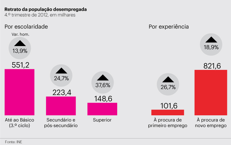 Os dados divulgados nesta quarta-feira revelam que a população empregada continua a reduzir-se de forma significativa e o pouco emprego criado é precário e a tempo parcial. No último ano, a economia perdeu 200 mil postos de trabalho. Mas, se recuarmos ao terceiro trimestre de 2008 – quando o emprego começou a cair –, a contracção do mercado de trabalho foi ainda mais pronunciada. Desde então, perderam-se 664 mil postos de trabalho e a taxa de desemprego não parou de subir.