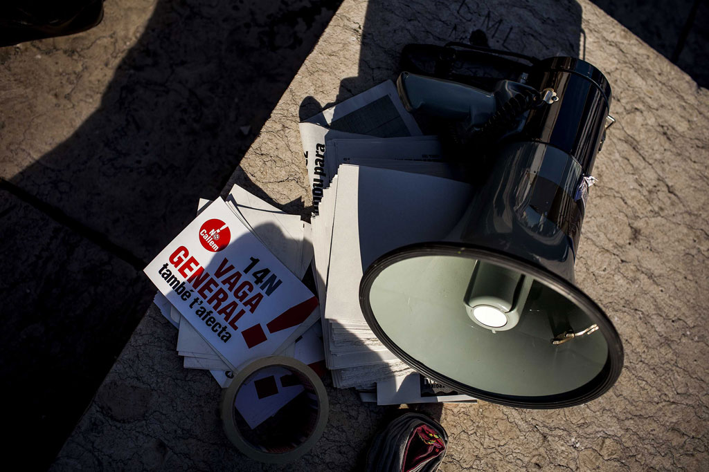 Uns metros mais abaixo, depois das faixas e bandeiras da central sindical e dos seus sindicatos, seguia a segunda parte da manifestação. Encabeçada pelos estivadores, este bloco mostrava-se mais animado e ruidoso.