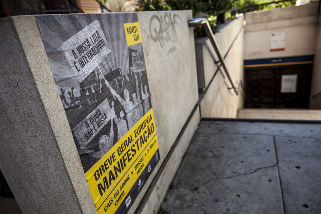 7h14 Em Setúbal há mobilização para a greve. Mas também há quem vá trabalhar para perder o medo de ficar sem trabalho. Na estação de comboios de Setúbal, junto à Praça do Brasil, há painéis de azulejos de que ilustram a "Dor" e a "Revolta". Há também uma placa onde se lê que as obras que a estação sofreu em 2010, "contribuem para a redução das disparidades económicas e sociais entre os cidadãos da União Europeia". Neste cenário, Pelé Semedo, 46 anos, na construção civil desde os 15, desesperado por ver que a supressão do comboio para o trabalho no Barreiro lhe há-de suprimir um dia de salário. "A austeridade não me deixa fazer greve", justifica. Vinha apanhar o último comboio do dia para fintar a greve de hoje. A greve fintou Pelé. Ricardo Vilhena