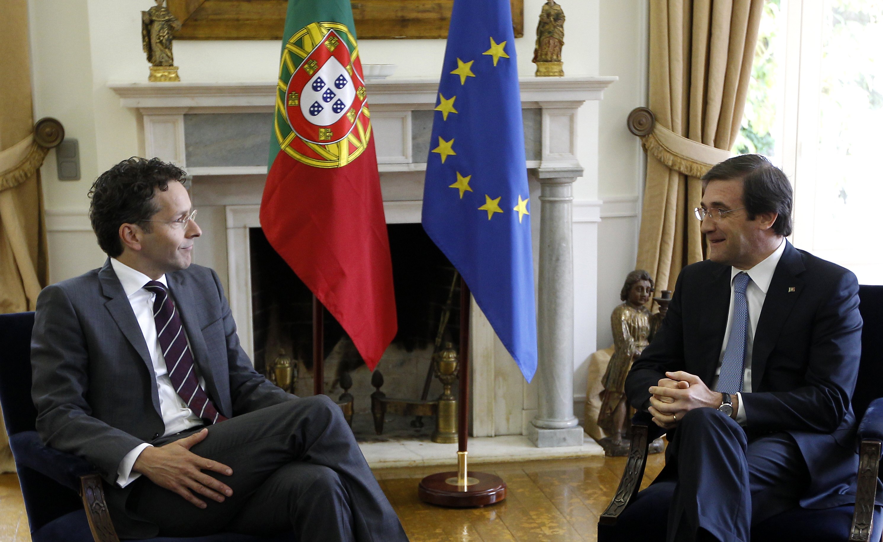 O chefe do executivo PSD/CDS-PP, que nesta manhã se reuniu com o presidente do Eurogrupo, referiu ter dito a Jeroen Dijsselbloem o mesmo que disse na Assembleia da República na sexta-feira: “Não podemos, desde já, excluir que Portugal não possa vir a necessitar de flexibilizar as metas do défice para 2014, mas faremos tudo o que está ao nosso alcance para cumprir as metas que foram agora acordadas no sétimo exame regular.”