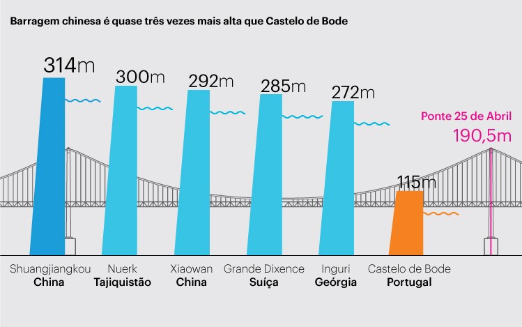 A barragem de Shuangjiangkou, na região de Sichuan, no Centro do país, terá 314 metros de altura, produzindo electricidade e regulando os caudais de água do rio Dadu, onde outros empreendimento hidroeléctricos estão previstos.