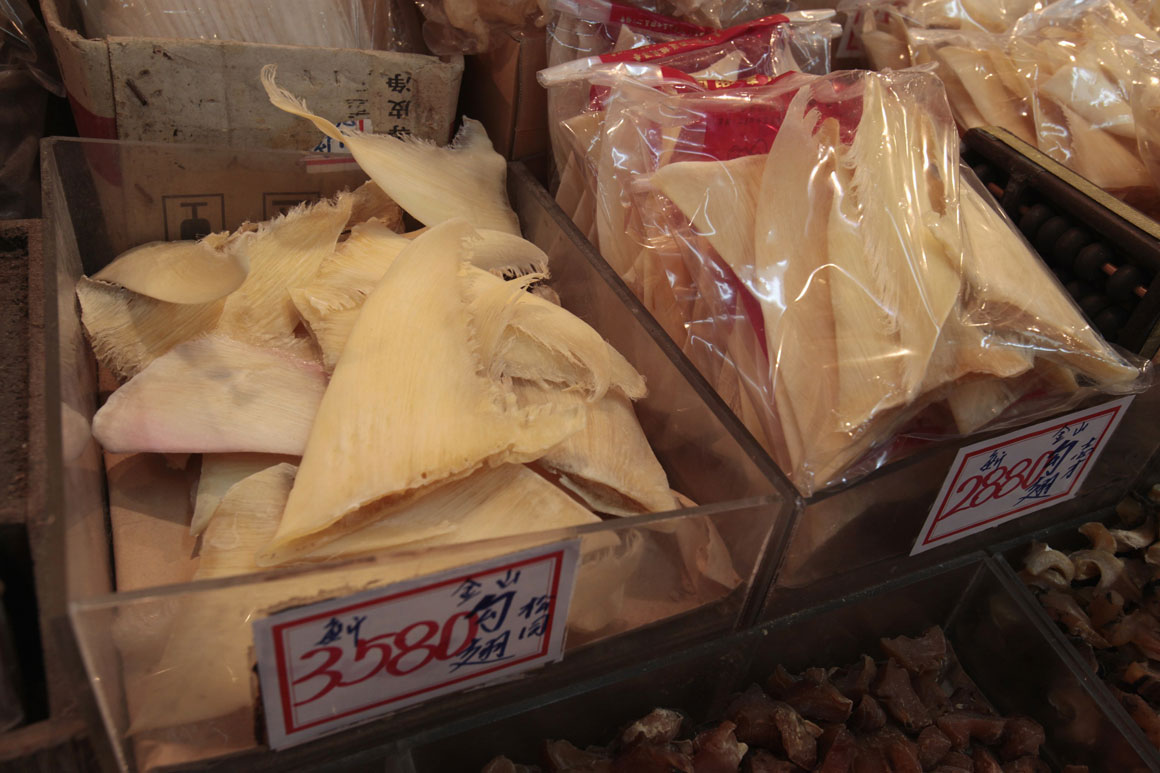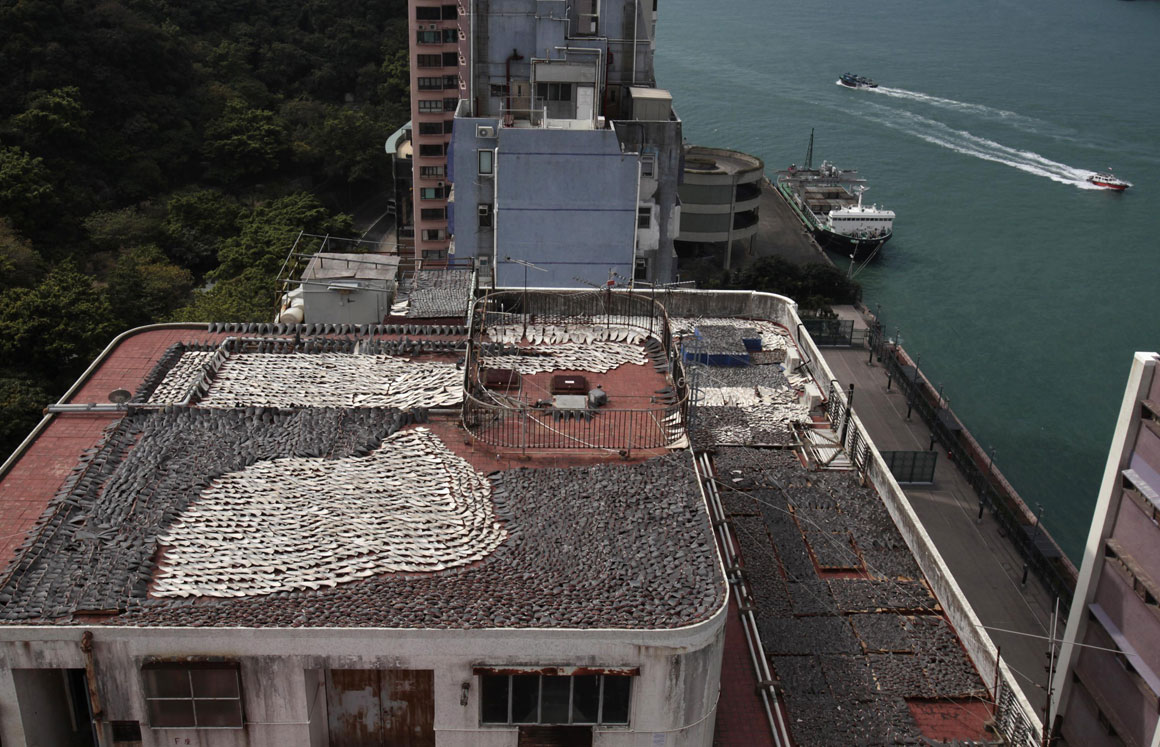Segundo Gary Stokes, foi para escapar às críticas que os comerciantes em Hong Kong começaram a subir às coberturas dos edifícios, onde milhares de barbatanas estão a secar, longe da vista pública, em antecipação do pico de consumo do Ano Novo chinês, em Fevereiro.