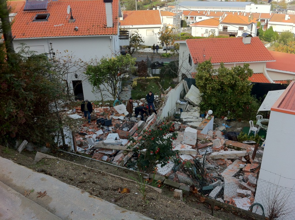 Uma panela foi parar ao telhado, as telhas voaram em várias direcções, algumas pousaram nos galhos das árvores. Os muros das habitações vizinhas foram derrubados. Mais do que partir vidros, o impacto da explosão arrancou as molduras de alumínio das janelas.