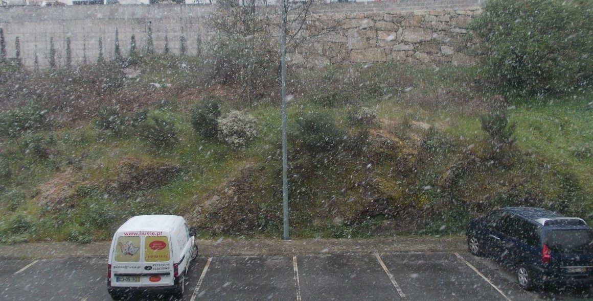 Na cidade da Guarda, onde os termómetros marcam dois graus de temperatura máxima, a neve começou a cair por volta das 9h30.