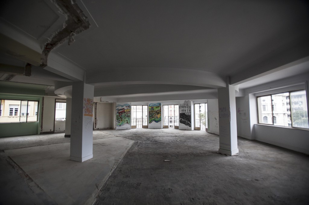 Paredes e vidros partidos, mobília amontoada e muito pó atestam ainda que o edifício está há muito devoluto. Contudo, as obras de renovação já começaram, incluindo a remoção de parte do pavimento que foi considerado irrecuperável.