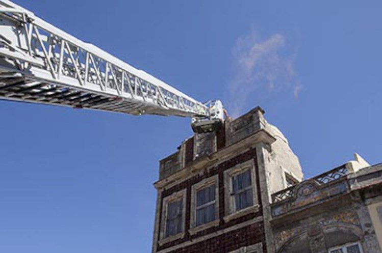 Ainda durante a manhã, com recurso a uma auto-escada, os Voluntários de Leixões procederam à remoção de parte dos escombros do prédio, que vai ser demolido conforme planeado.