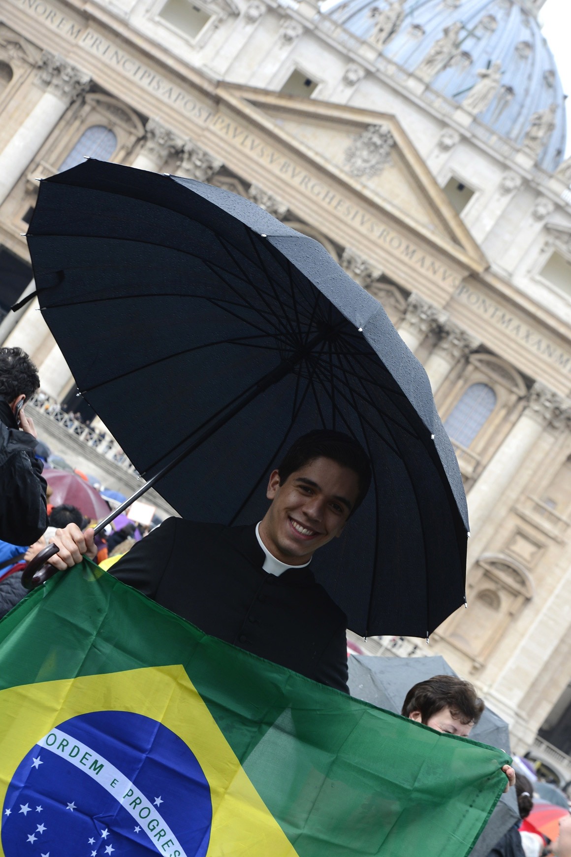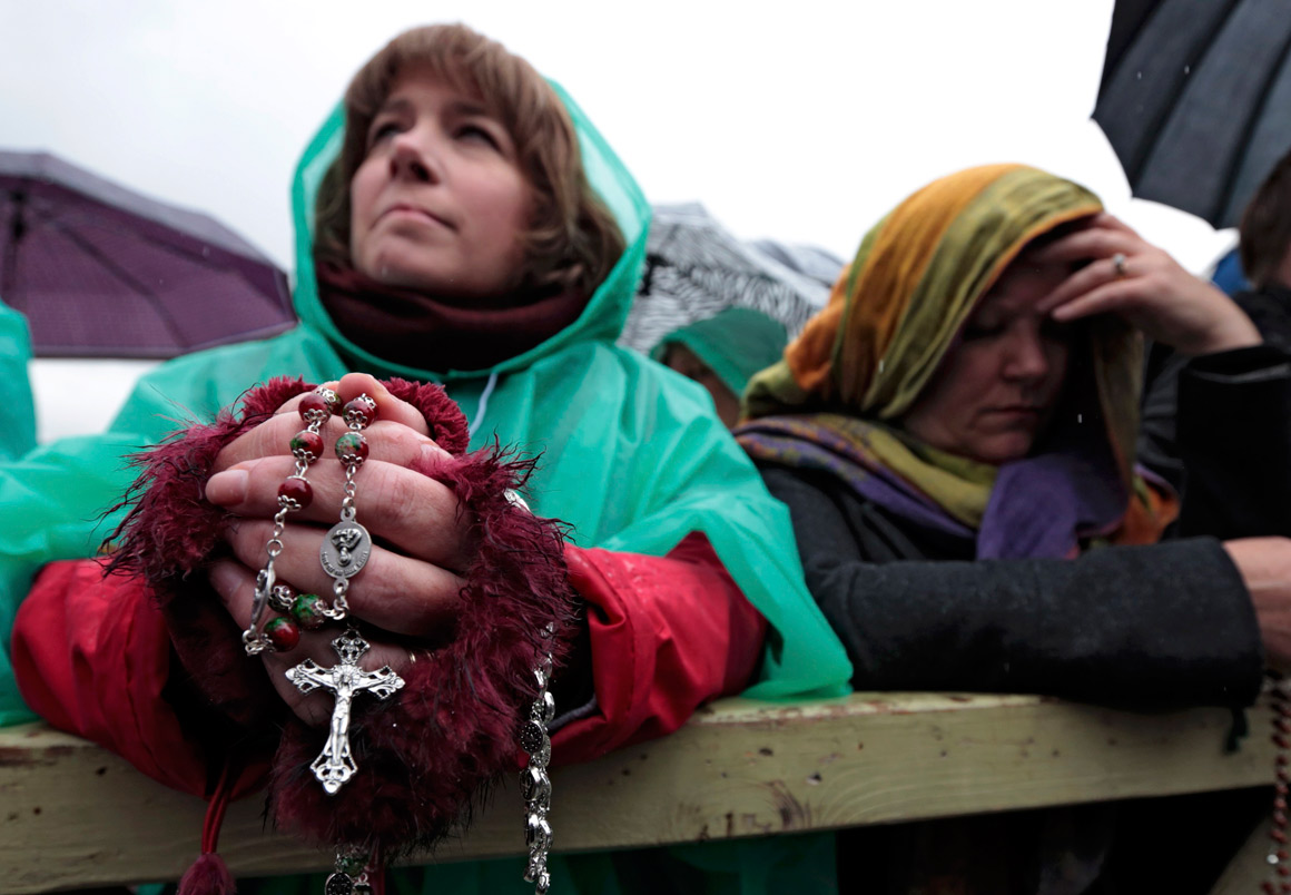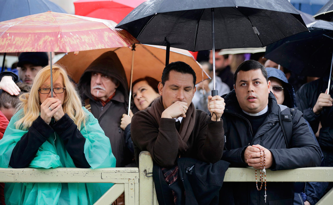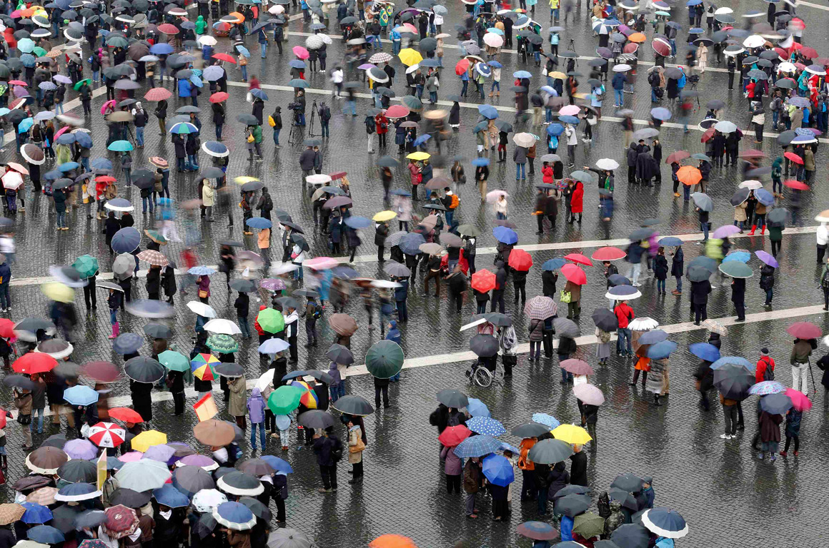Antes de Francisco, o dia foi de guarda-chuvas e rosários