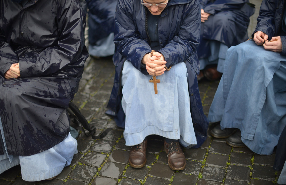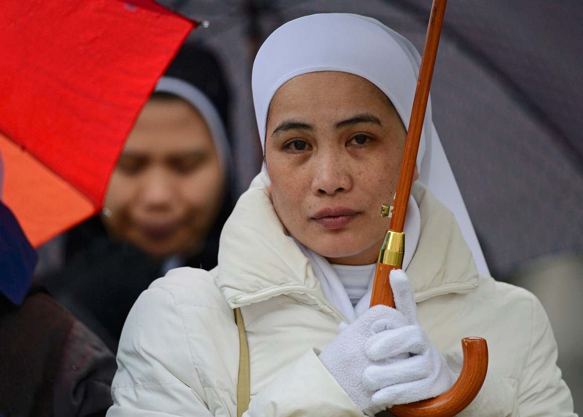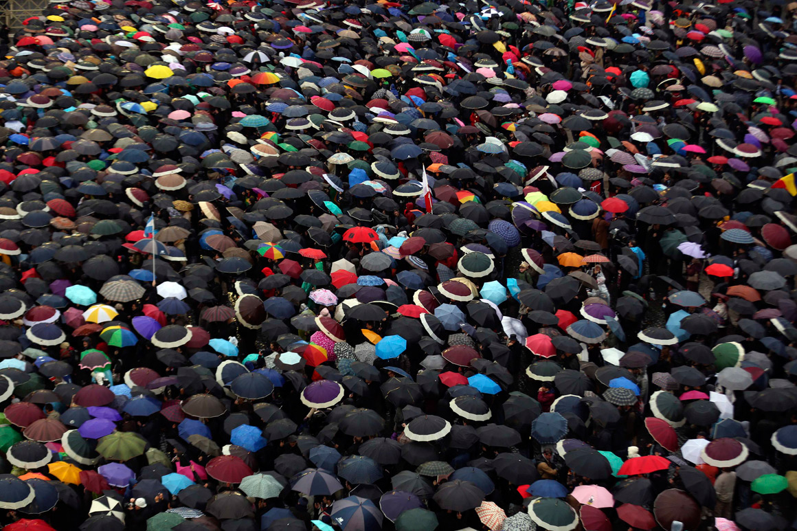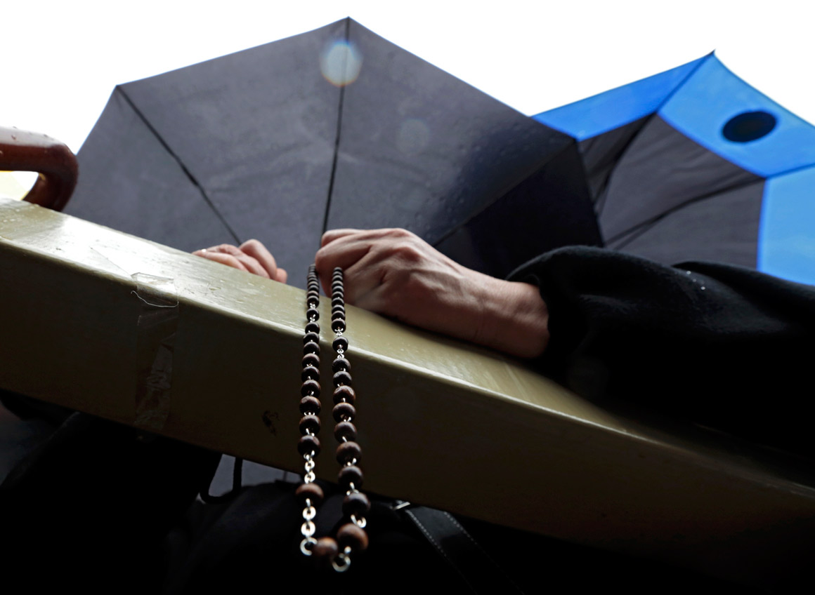 Antes de Francisco, o dia foi de guarda-chuvas e rosários
