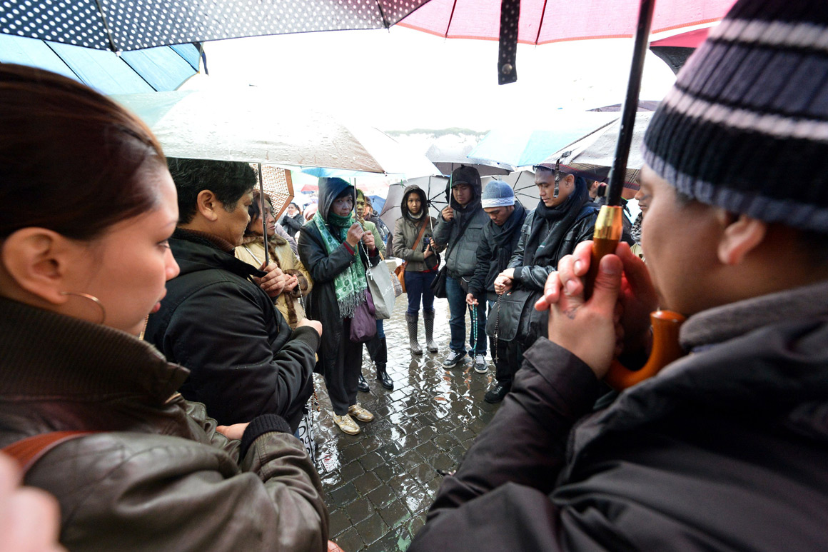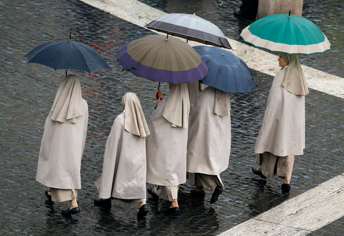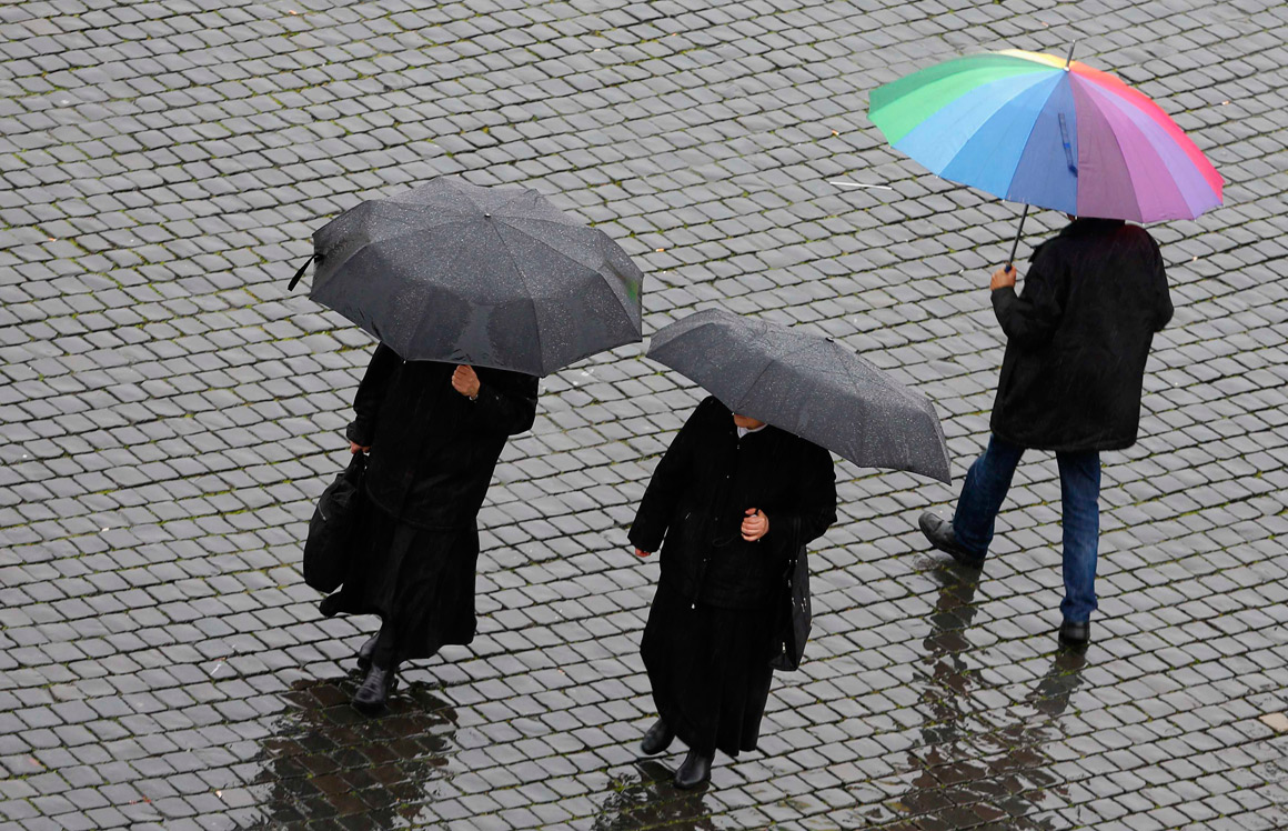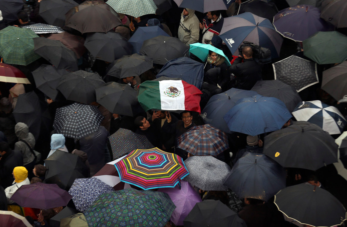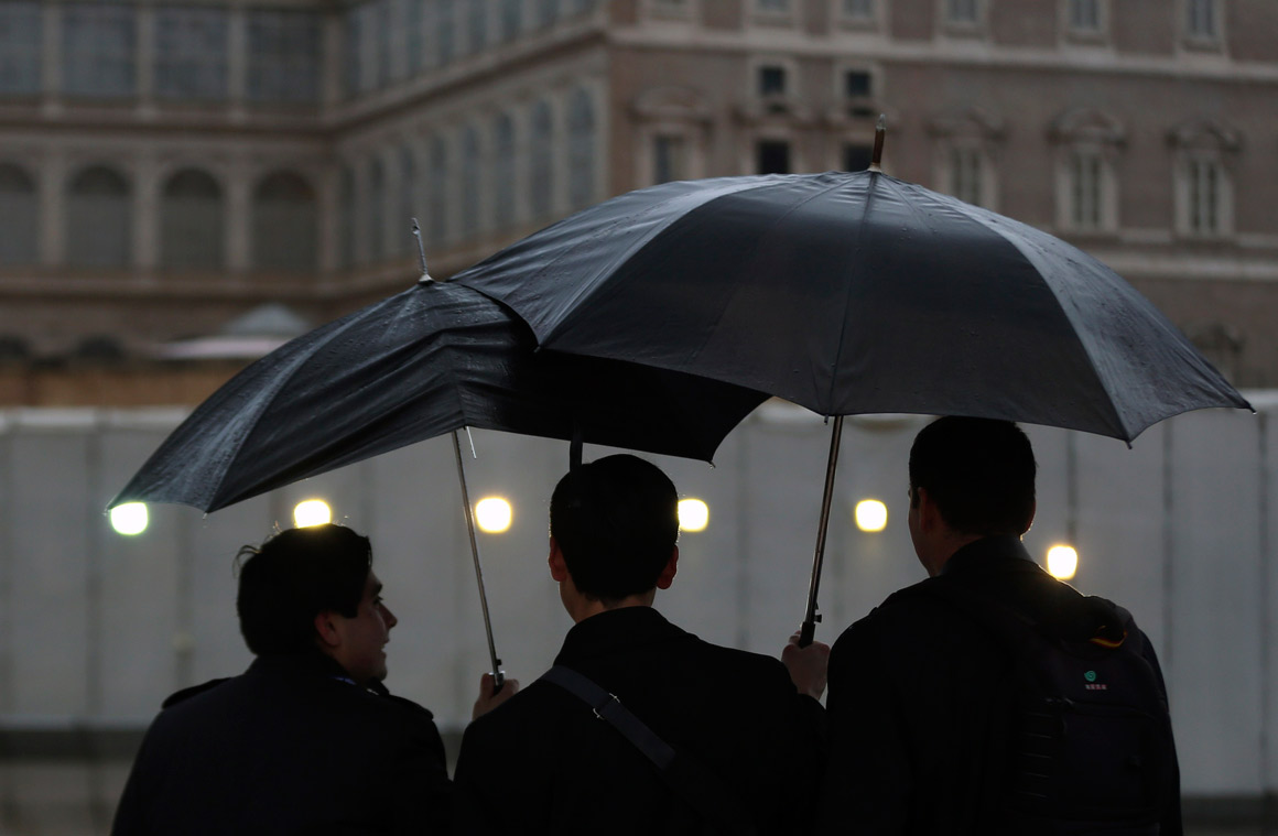 Antes do fumo branco e de Jorge Maria Bergoglio ter escolhido o nome Francisco, o dia no Vaticano ficou marcado pela chuva e pelos actos de fé. As máquinas fotográficas registaram muitos guarda-chuvas e rosários nas mãos dos peregrinos.