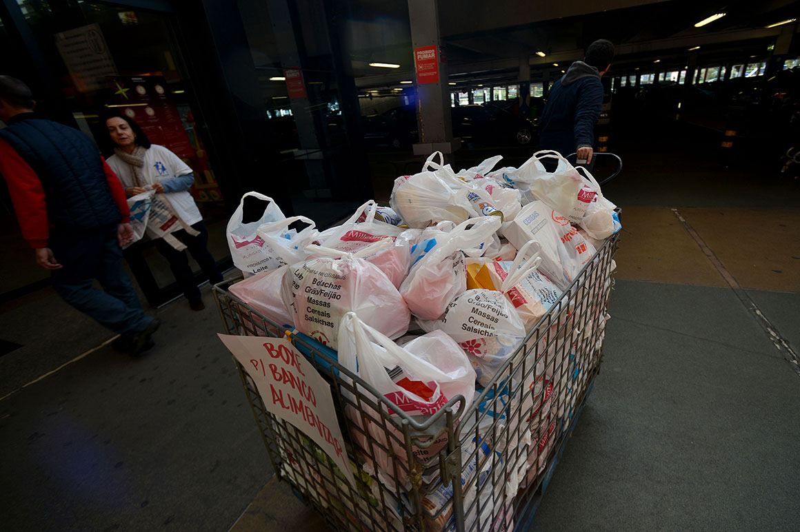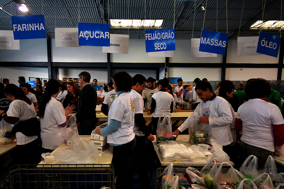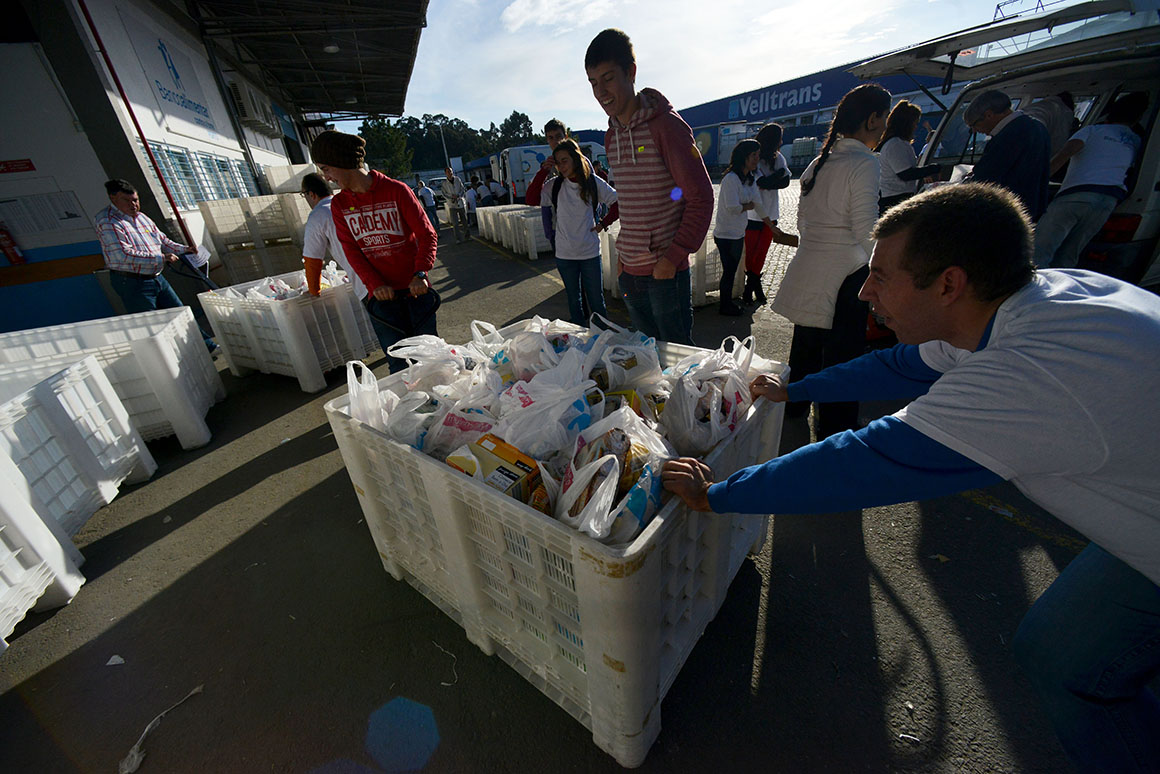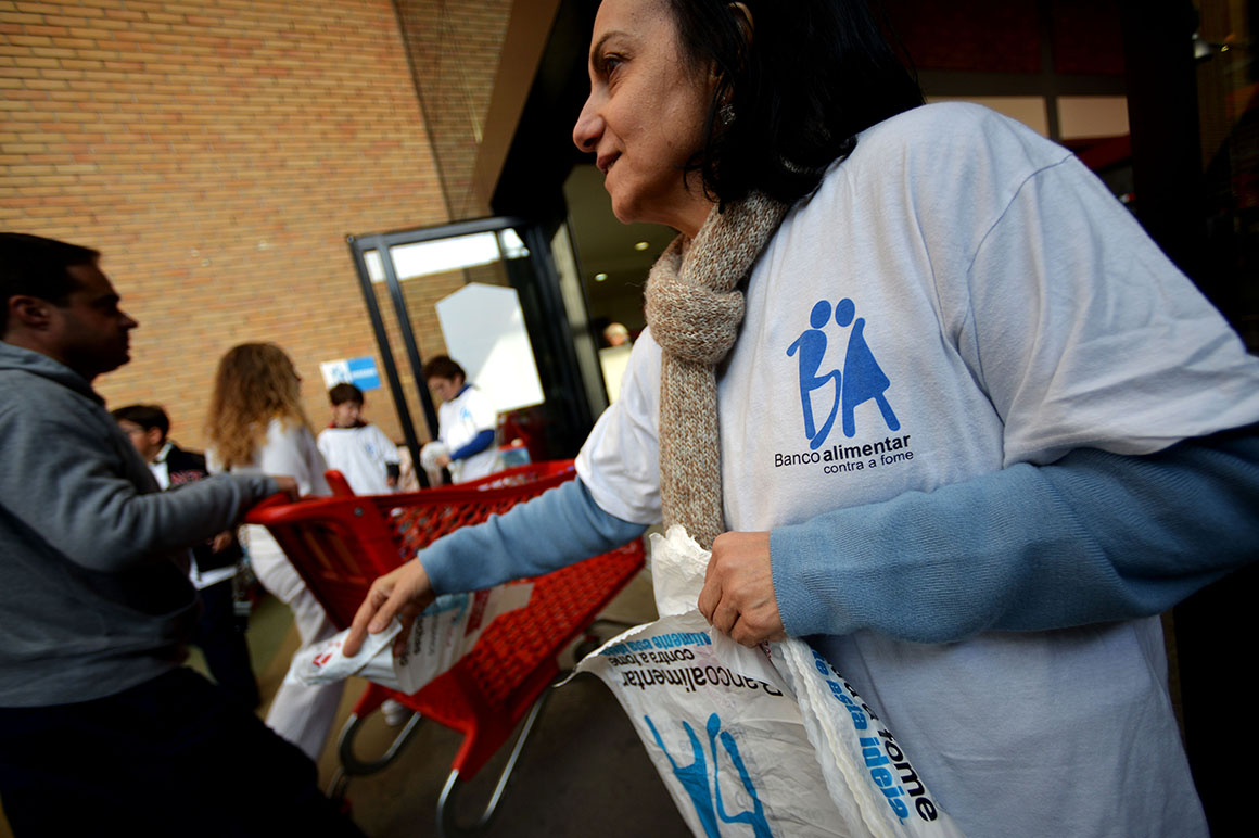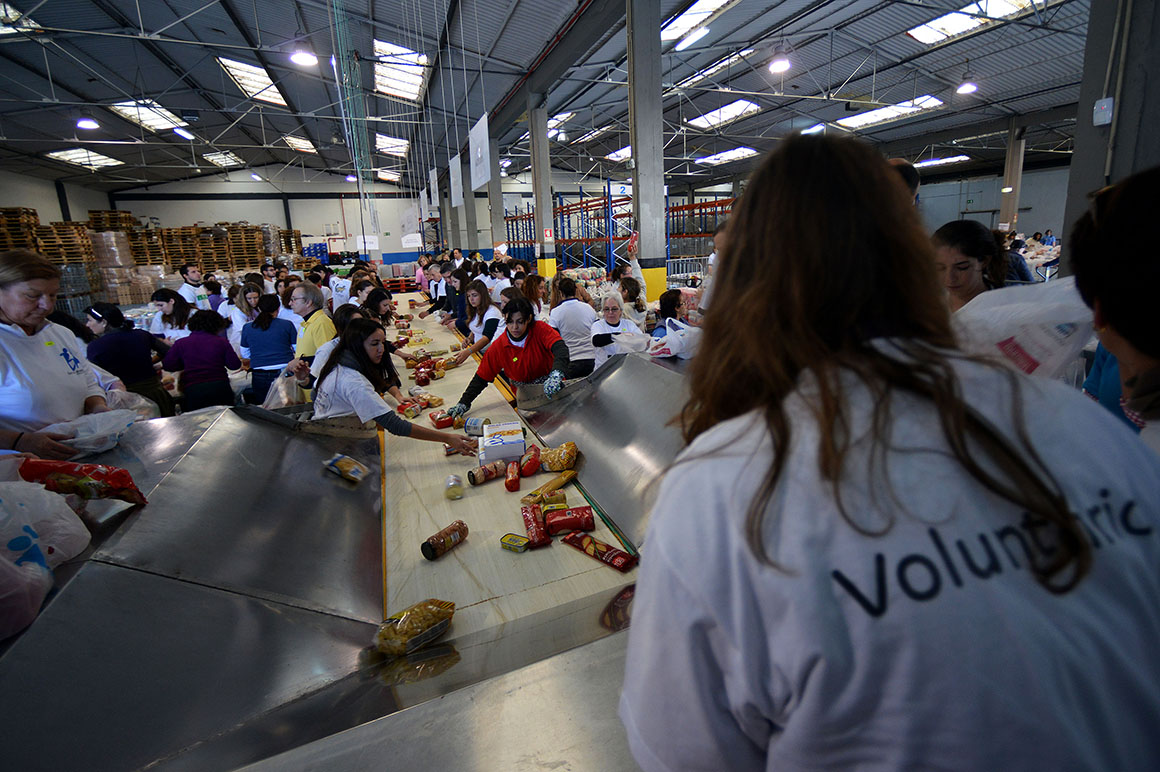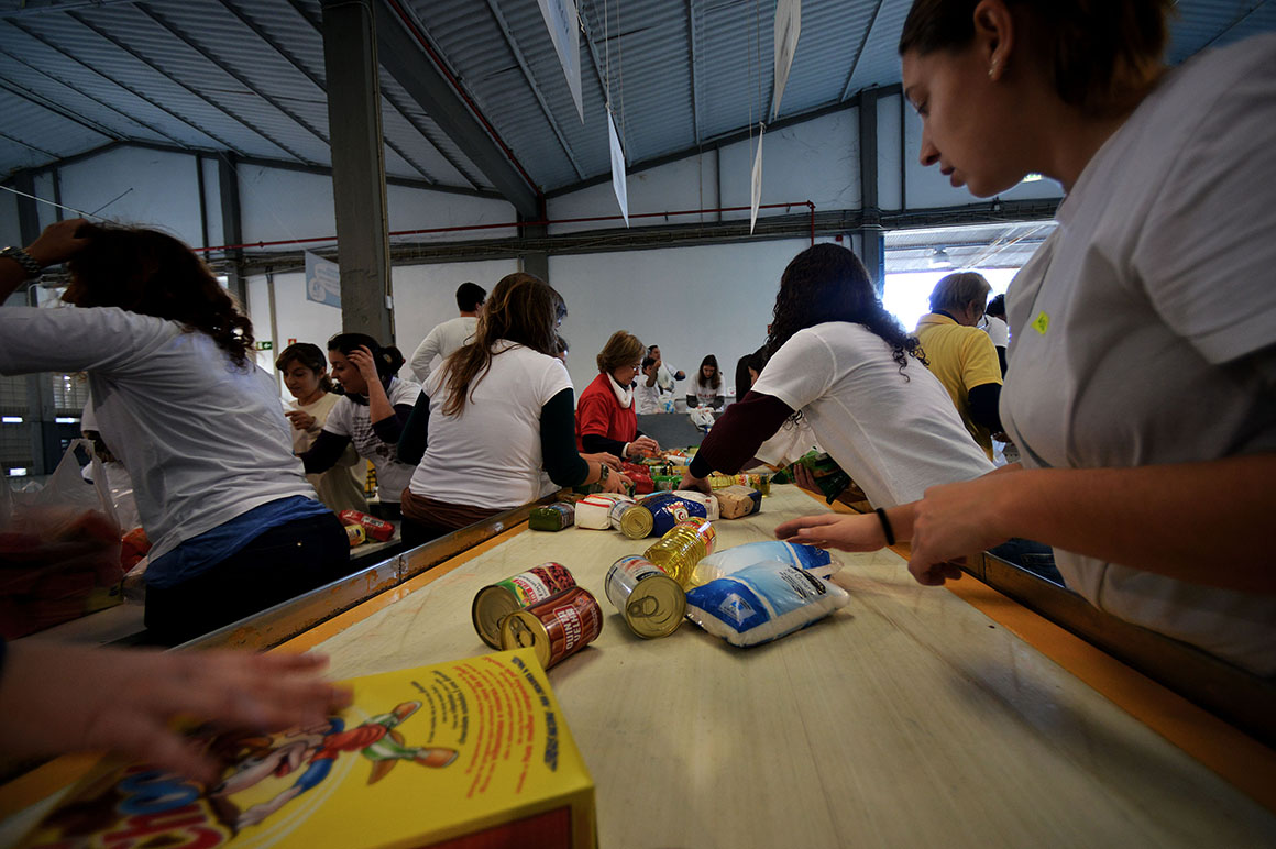 “Maior do que a crise que nos bate à porta, é a solidariedade dos portugueses”. Eis o mote da campanha dos bancos alimentares contra a fome que hoje e amanhã decorre em todo o país. No Porto, à volta de cinco mil voluntários dão umas horas do seu fim-de-semana. São elos de uma cadeia que ali, como noutros distritos, nestes dias se mantém imparável: entregar sacos a quem vai às compras aos supermercados ou hipermercados, recolher os donativos, transportá-los para os armazéns, pesá-los, separá-los por produto ou acomodá-los. A.C.P.