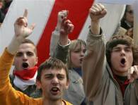 “Liberdade para Milinkevich”, gritaram os manifestantes pelas ruas da capital. Muitos ergueram a bandeira nacional vermelha e branca, proibida por Lukashenko na década de 90, com o propósito de recuperar os símbolos do estilo soviético.