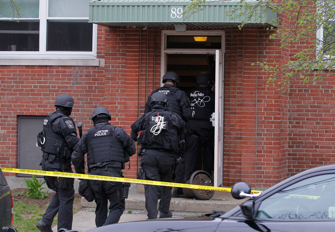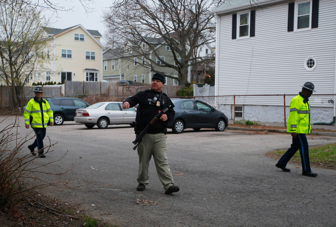 A operação envolve nove mil agentes. Tudo esteve focado no chamado "suspeito n.º 2" e em Watertown, onde a polícia levou a cabo buscas casa a casa. As televisões mostraram imagens de polícias a entrarem numa habitação que se presume ser a do suspeito e a levarem uma mulher para o exterior. A polícia pediu entretanto aos media para não comprometerem a operação ao transmitir as imagens das casas em que está a entrar. À tarde (cerca das 17h45 em Lisboa) a polícia estimava ter completado "60% a 70% por cento" das buscas. O responsável da polícia de Boston, Timothy Allen, disse que ainda havia, no entanto, "muito trabalho a fazer".