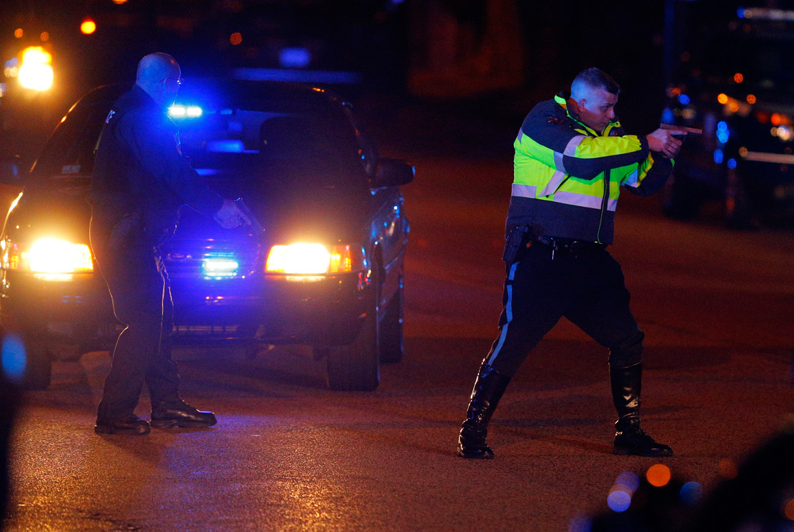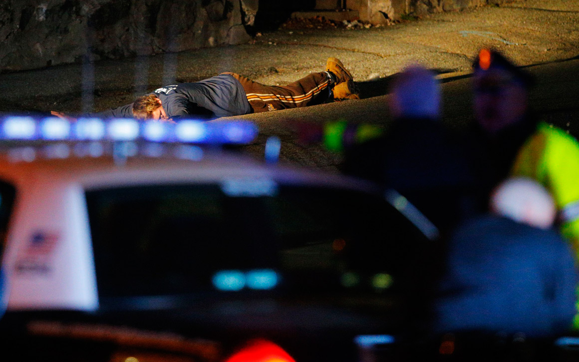 Um veículo da polícia estava a ir contra os dois homens, mas estes dispararam contra ele, até os polícias perderem o controlo da viatura. Os dois suspeitos tinham ainda uma bomba, e “ainda no meio da troca de tiros, atiraram-na contra os polícias, mas não chegou muito longe”. Kiztenberg viu então os homens correr em direcção aos polícias. Não tem a certeza do que aconteceu ao primeiro, o segundo conseguiu entrar num veículo da polícia e fugir.