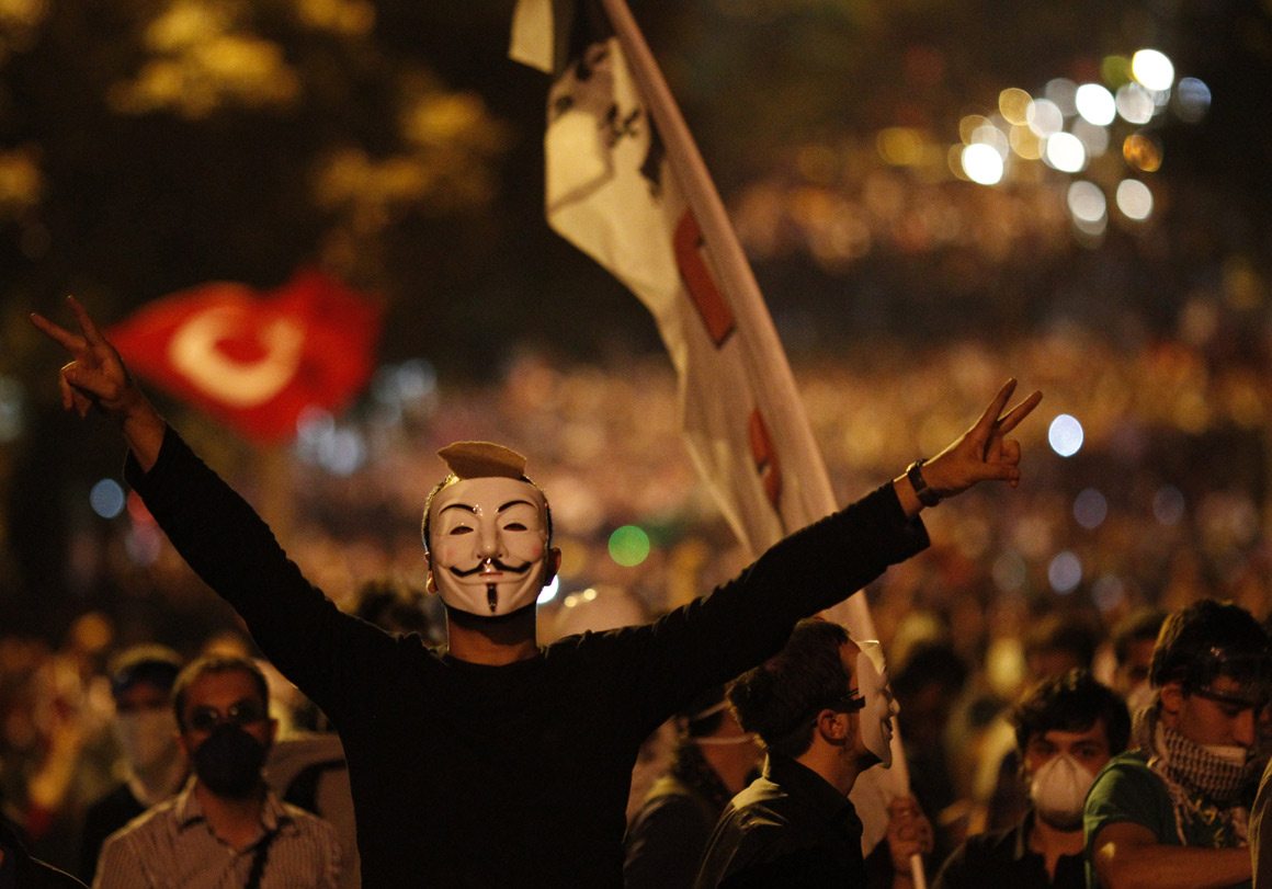 No terreiro em obras contíguo à praça, por baixo do parque Gezi, há milhares de manifestantes aos gritos, tentando agredir a polícia. Alarmes de automóveis e edifícios soam permanentemente.