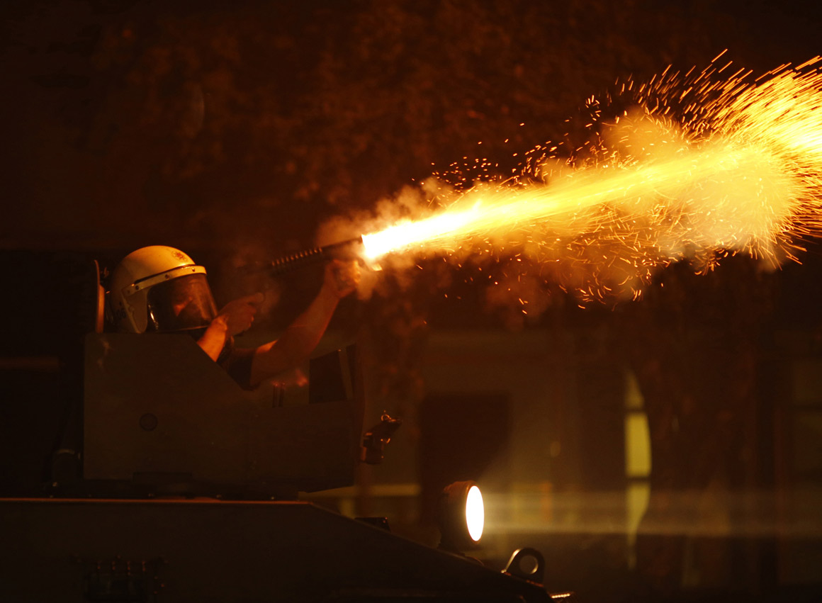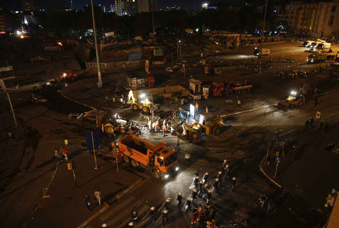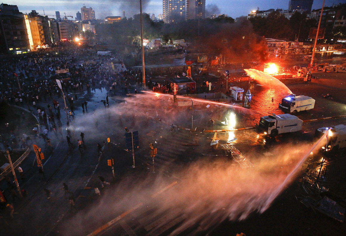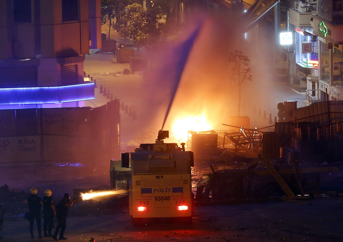 São três da manhã e os combates continuam. A polícia ocupa a Praça Taksim, onde uma equipa de bulldozers vai limpando os destroços e os restos de cartazes e bandeiras, iluminados por intensos holofotes. À volta, os manifestantes lançam pedras, cocktails molotov e fogo de artifício. Há carros e autocarros a arder.