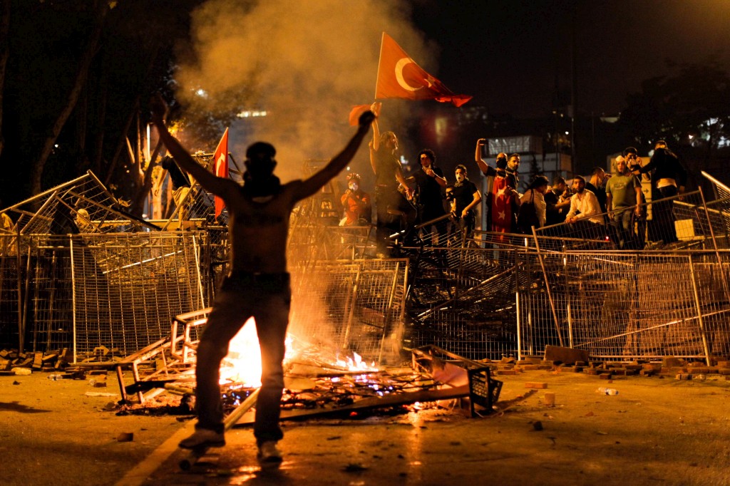 O protesto começou como contestação a um plano de remodelação do parque Gezi na Praça Taksim mas rapidamente se transformou num movimento de contestação ao poder de Erdogan e do islâmico Partido da Justiça e do Desenvolvimento.