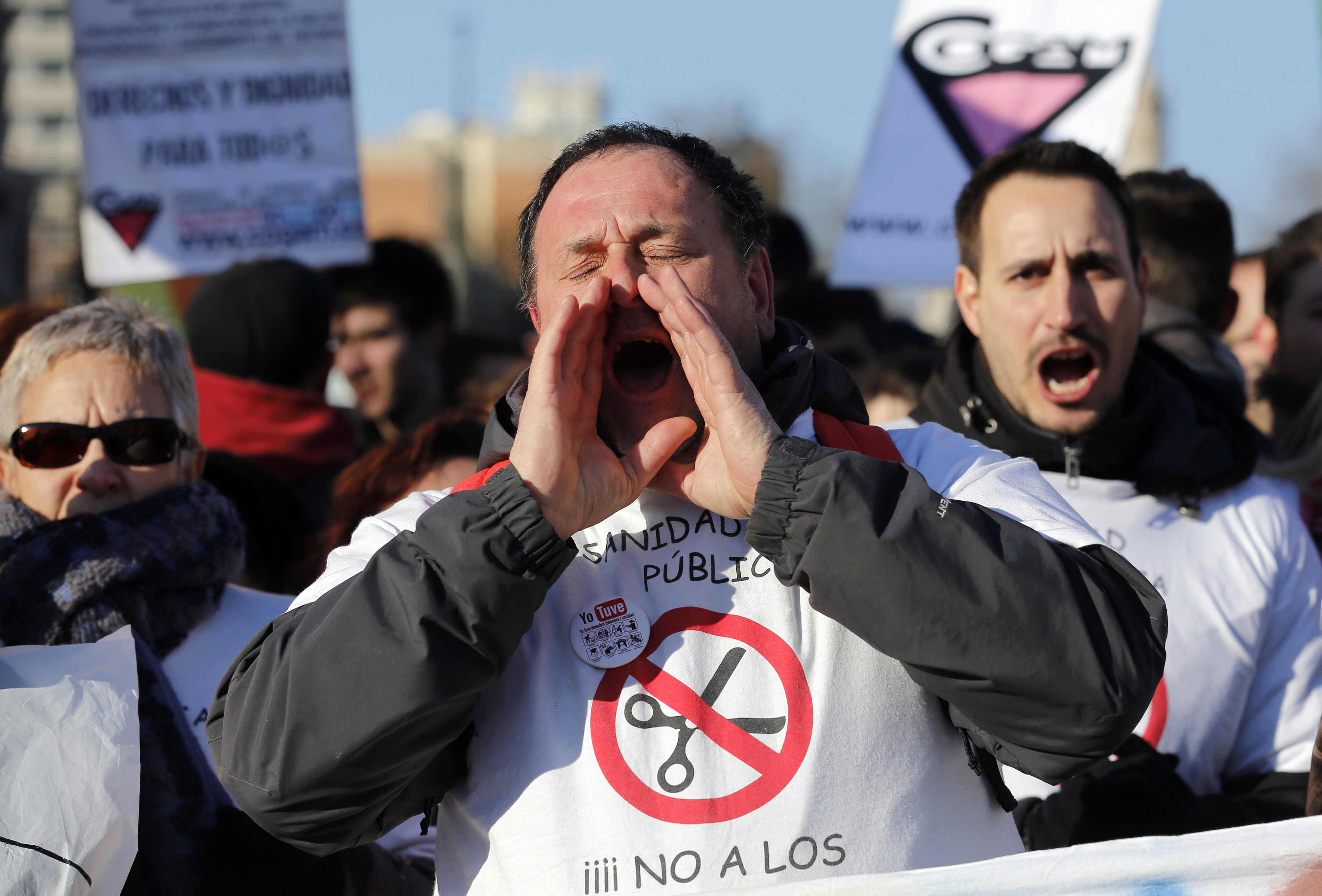 Aos gritos de “Tus sobres, mis recortes”, os manifestantes lembraram o escândalo de financiamento paralelo no Partido Popular do primeiro-ministro Mariano Rajoy, compararando o dinheiro distribuído pelos políticos em envelopes entregues por debaixo da mesa, e os cortes aplicados ao país.