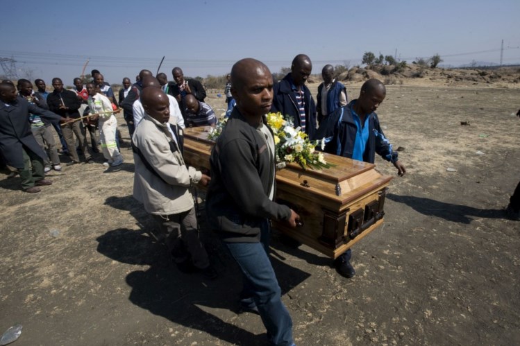 Entretanto, a empresa que explora a mina de platina de Marikana, a Lonmin, e representantes dos trabalhadores suspenderam as conversações, que deverão recomeçar na segunda-feira, dia em que se espera que acabem de ser enterrados todos os mortos na mina (a identificação das vítimas, muitas delas imigrantes, levou a que o processo demorasse mais tempo).