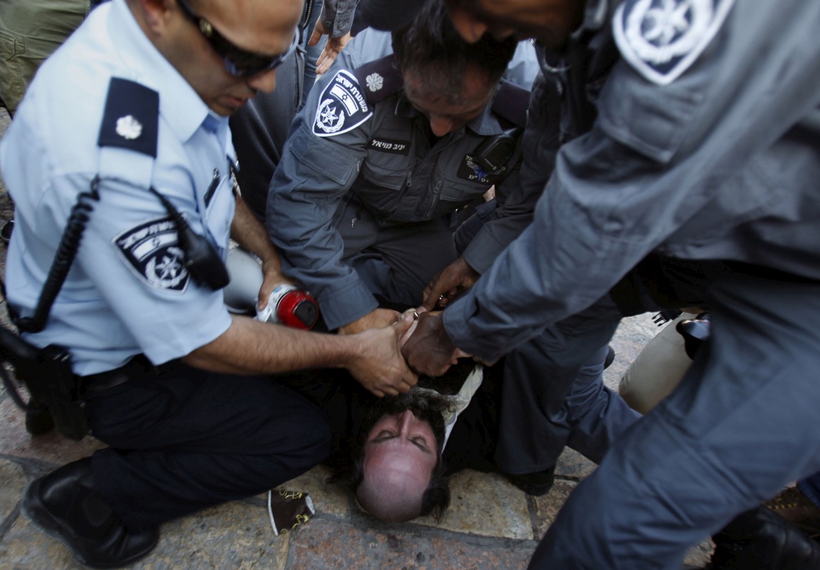 As mulheres chegaram com os xailes postos mas sob um forte dispositivo de segurança. Os homens vestidos de negro insultaram-nas, procuraram barrar o caminho às activistas do Women of the Wall e tentaram forçar a passagem para junto delas. Mas, desta vez, a polícia protegeu-as. Os manifestantes ultra-ortodoxos chamaram "nazis" aos polícias e nos confrontos dois agentes acabaram por sofrer ferimentos ligeiros. As autoridades prenderam cinco fiéis ultra-ortodoxos.