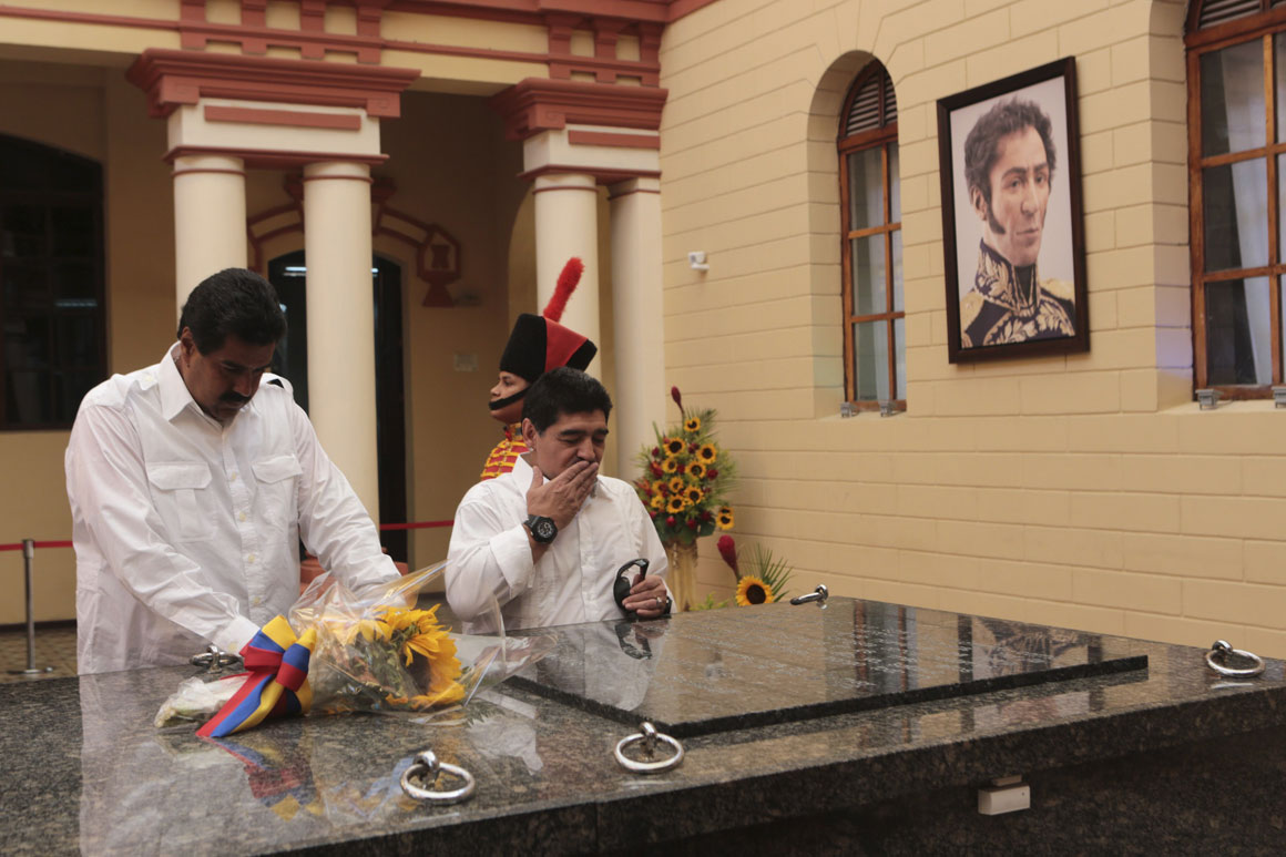 Maduro surgiu na televisão acompanhado do antigo futebolista argentino Diego Maradona, que participou na fase final da campanha do vice-presidente de Chávez.