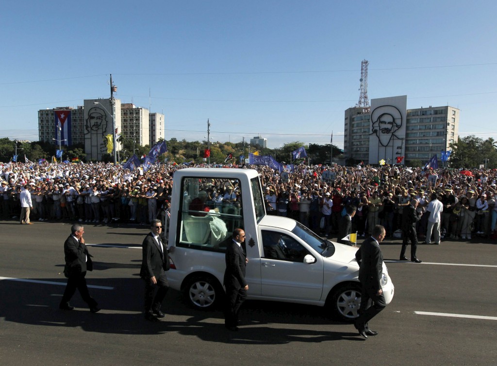 O Papa Bento XVI pediu esta tarde (manhã em Havana) mais liberdade religiosa em Cuba, na homilia da missa por ele presidida, que terminou há uma hora atrás, na Praça da Revolução, em Havana. Diante da efígie de Che Guevara e naquela que é o local simbólico das grandes concentrações do regime, o Papa alemão (85 anos a 16 de Abril) enalteceu “os passos que se têm realizado em Cuba para que a Igreja cumpra a sua irrenunciável missão de anunciar, publica e abertamente, a sua fé”. Mas, acrescentou, “é preciso seguir em frente”.
