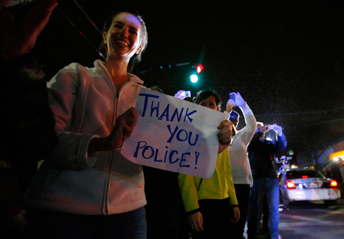 Assim que a captura foi anunciada, residentes de Watertown saíram para rua e saudaram a detenção com aplausos.