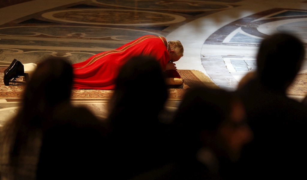 O Papa Francisco presidiu esta sexta-feira à cerimónia da Paixão de Cristo. Durante alguns minutos, estendeu-se, penitente, no chão da basílica de São Pedro, no Vaticano.
