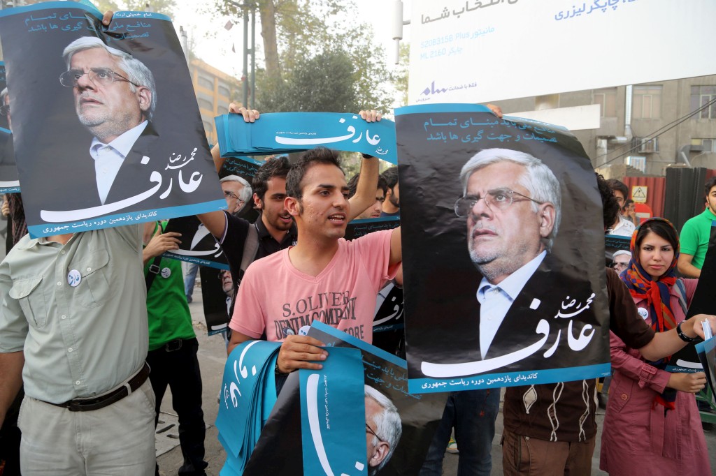 Aref não apelou ao voto noutro candidato, mas havia pressões para que se afastasse a favor do representante da ala moderada, Hassan Rowhani. Este antigo negociador da questão nuclear tem obtido bons resultados em sondagens e na segunda-feira Khatami deu-lhe o seu apoio publicamente.