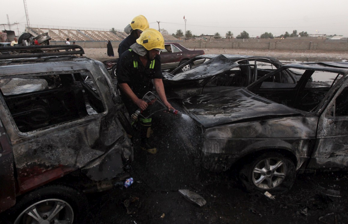 Um segundo veículo armadilhado explodiu em seguida, junto a um stand de venda de carros usados. As autoridades dizem que pelo menos 12 pessoas morreram nos ataques de Sadr City.