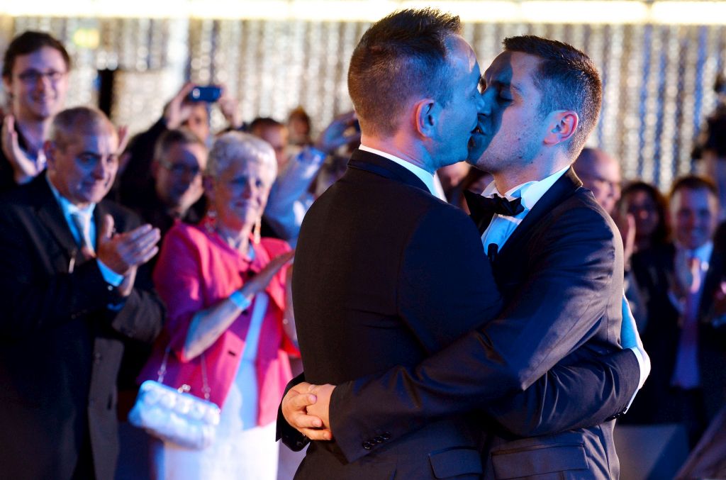 Vincent Autin e Bruno Boileau acabam de se tornar no primeiro casal do mesmo sexo a casar em França, numa cerimónia na cidade de Montpellier realizada debaixo de apertada vigilância policial.