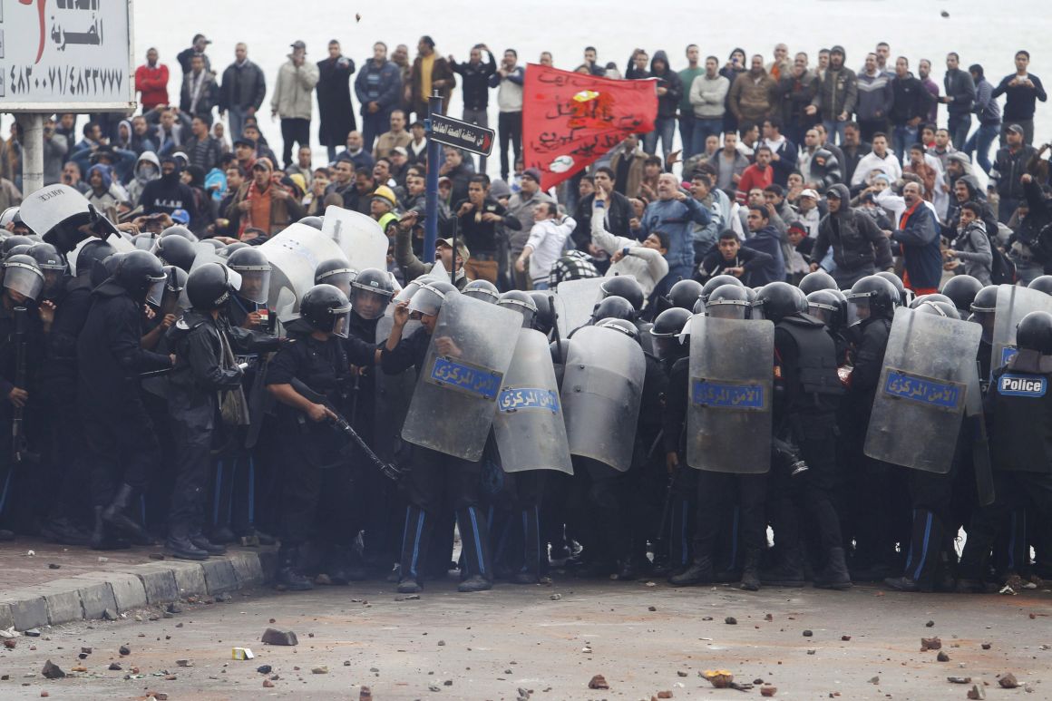 A polícia anti-motim, que recebeu ordens para “actuar com determinação” para pôr fim aos distúrbios, começou por formar barreiras para impedir a marcha dos manifestantes e acabou por usar gás lacrimogéneo na tentativa de dispersar uma multidão calculada em cerca de mil pessoas, que responderam atirando pedras. Segundo disse o ministério da Saúde à AFP, os confrontos, que duraram pouco mais que 90 minutos, provocaram 32 feridos.