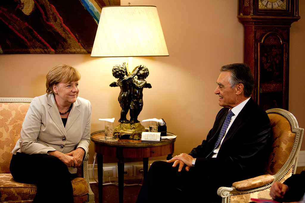 A conversa com Cavaco Silva decorreu em inglês. A chanceler apenas chamou a tradutora enquanto se encontravam na sala pessoas estranhas à reunião. Quando todos saíram, a tradutora também foi dispensada e Angela Merkel e Cavaco Silva falaram em inglês.